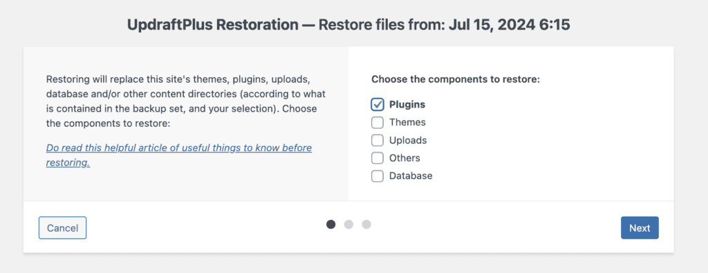 🔄 Step 2: Open UpdraftPlus and Restore Wraith #