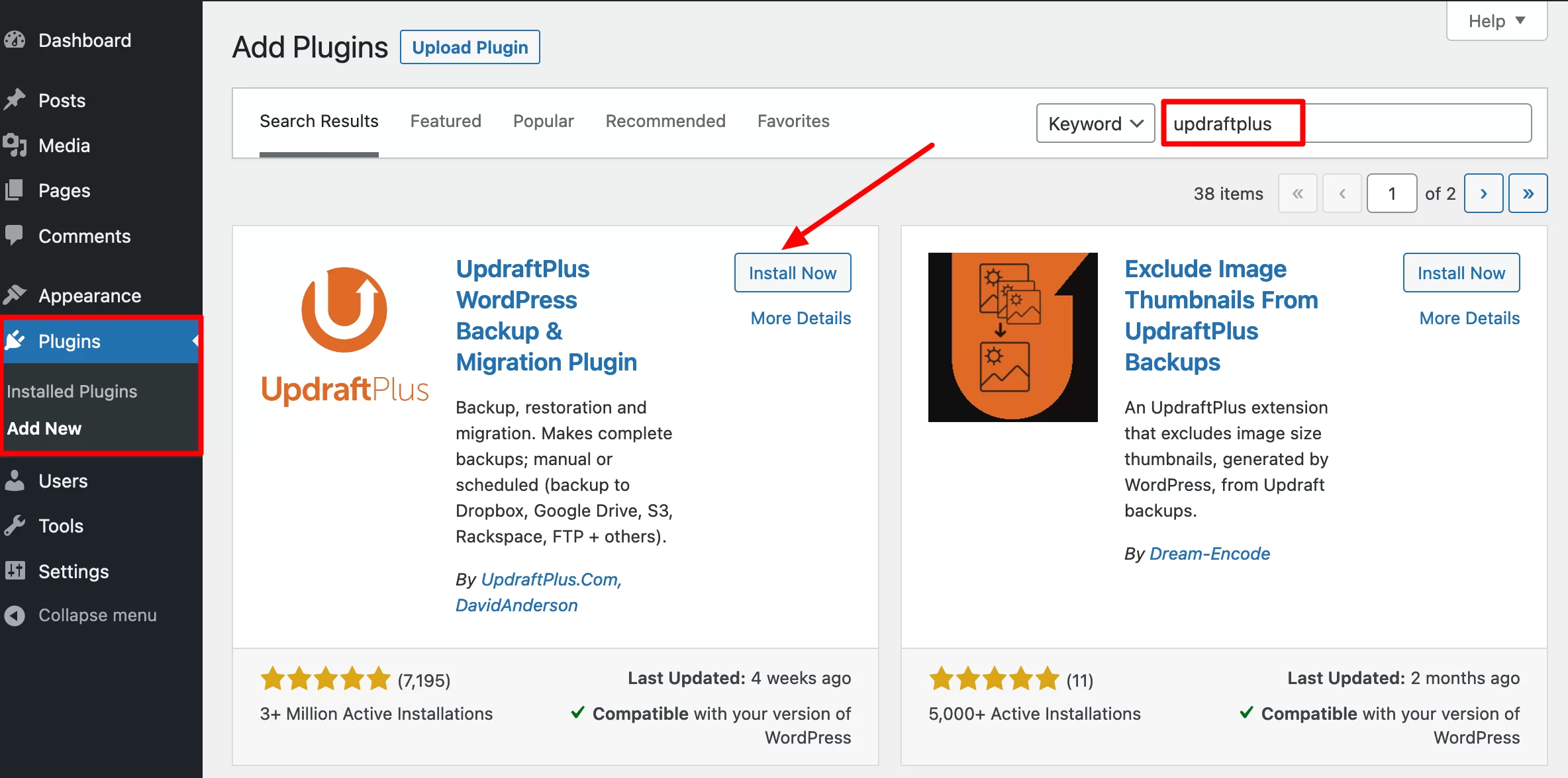 Settings > UpdraftPlus. - Click on the “Upload backup files” button.